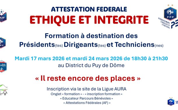 Le District du Puy de Dôme de Football lance un appel à candidature auprès des clubs pour l'organisation ...